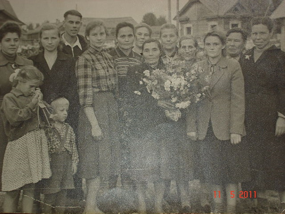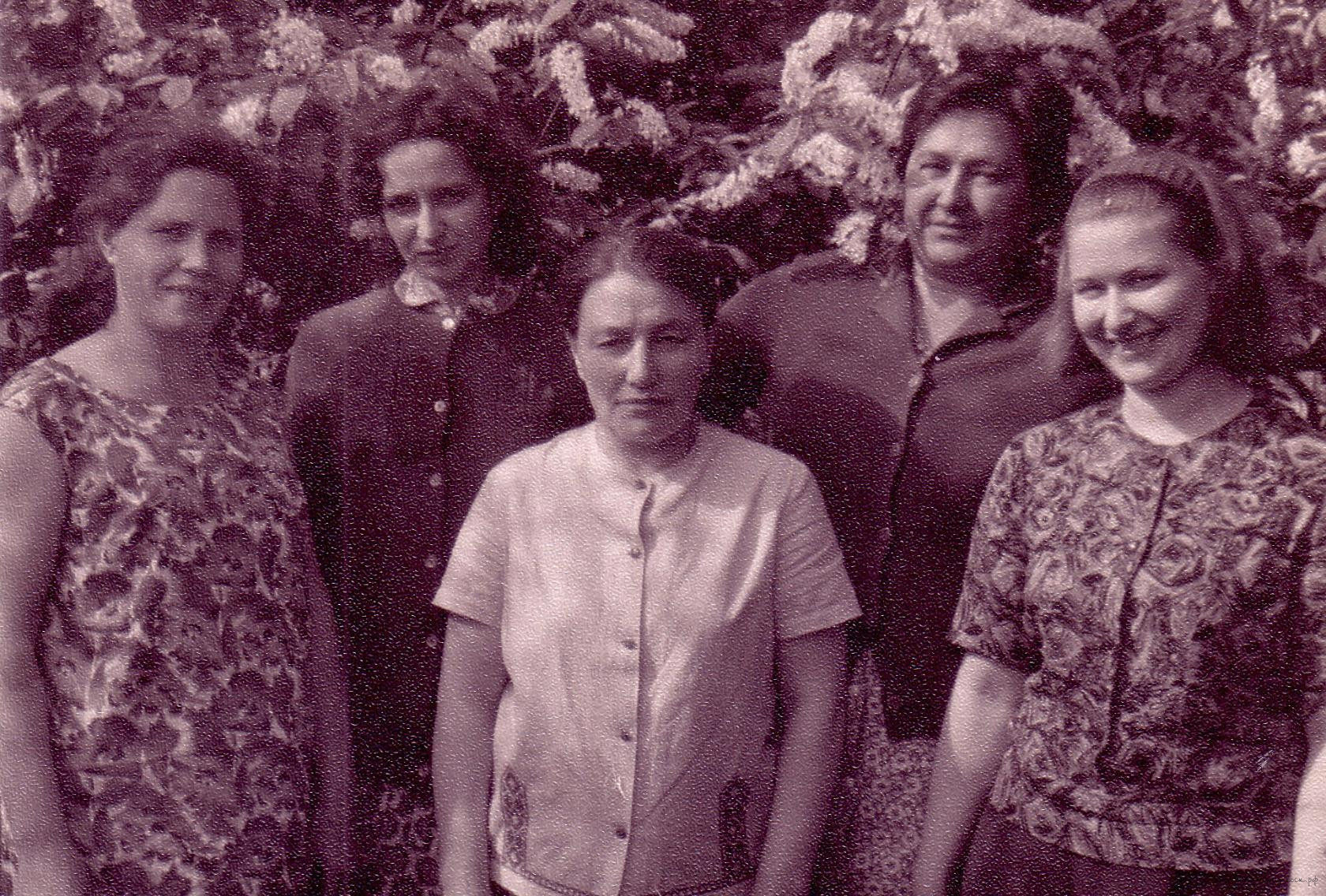 Винник Евдокия Андреевна (в центре) с подругами на старом стадионе